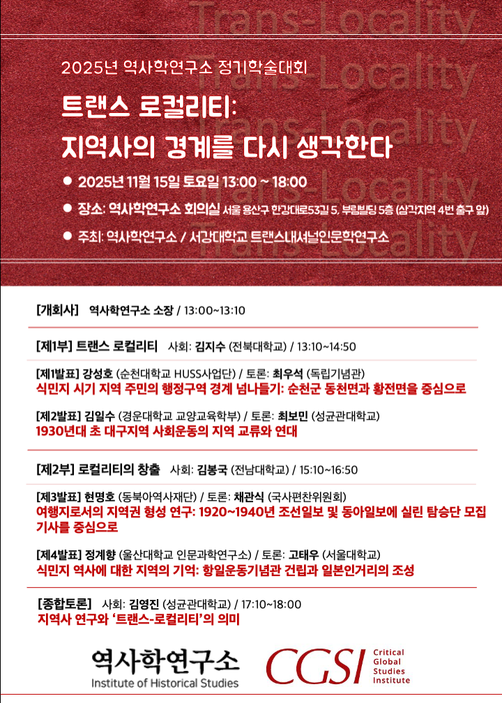 역사학연구소에서는 2025년 정기학술대회를 개최합니다.